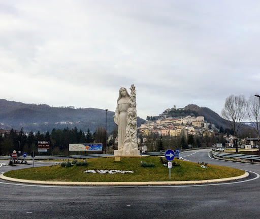 Bella l' entrata del pellegrino a Cascia ,che vede a dagli il benvenuto in questo bel borgo umbro ,la sua figlia piu' rappresentativa, con questa bella e maestosa statua della santa dell' impossibileđđđ°â...