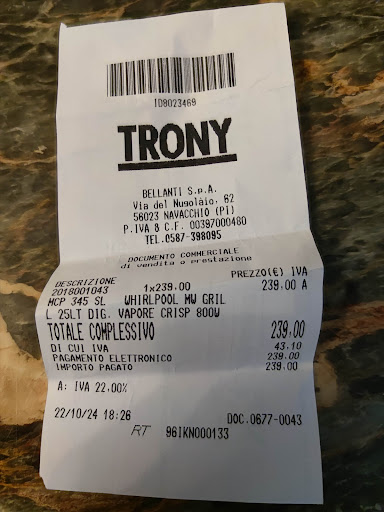 Read moreMi reco insieme a mia moglie per acquistare una lavatrice, e dopo aver guardato da soli i vari modelli per farci un idea chiediamo l'aiuto di un commesso per darci qualche spiegazione in più per poi procedere all'acquisto. Scelto il modello, il commesso dice che è disponibile solo il modello in esposizione,ma noi lo vogliamo comunque. Il commesso nota un piccolo sgraffio sul top della lavatrice e ci rassicura dicendo che ci farà un piccolo sconto.Dopo aver chiesto in cassa ci comunica che sul quel modello avendo solo un piccolo ricarico non potevano certo fare ulteriore sforzo. Comunque il commesso si impegna a sentire la rappresentante della azienda fornitrice se potessero loro fare qualcosa. Noi ringraziamo lasciamo lì la lavatrice ed attendiamo la telefonata il giorno successivo, che tempestivamente arriva con uno sconto si 30 EUR. Io devo solo ringraziare il commesso Gianluca che senza che noi avessimo chiesto niente si è prodigato per farci avere un piccolo sconto. Grazie davvero e questo dimostra che sono le persone che fanno le cose e non i marchi o...