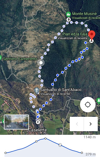 Alla fontanella del Campo Sportivo, prendere il sentiero di sinistra, coincidente con la Via Crucis. Poco prima del SECONDO pilone della Via Crucis (non il terzo!) prendere il sentiero a destra (lo si individua facilmente perché cementato). Da qui inizia la salita, ben segnalata, fino al Pian ed la Feja. C'è da faticare, ma la salita è al coperto, con gli alberi che offrono la loro ombra e un po' di fresco. La vista sulla valle, che di tanto in tanto si apre tra la vegetazione, è magnifica. Attenzione ai rovi. Tempo di salita circa 1h 30m / 1h 40m.
