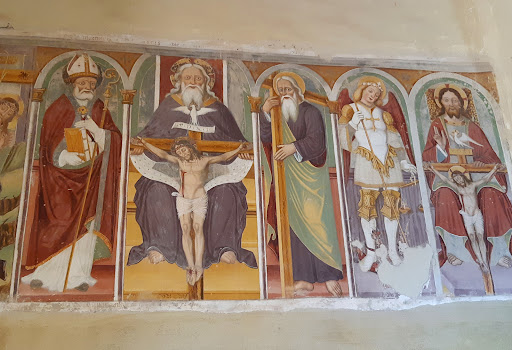 Read moreSituato appena sopra il paese in un luogo tranquillo e scenografico.Stupisce per i suoi affreschi così ben conservati,tanto da ricevere il nomignolo di piccola Sistina della Valle Seriana.Nella zona dell'aula quattrocentesca vi sono degli affreschi di ex voto attribuiti ai Marinoni mentre in quella dell'abside vi è un fantastico giudizio universale e una volta con profeti attribuito alla bottega dei Baschenis.Sull'altar maggiore è collocato un bellissimo polittico del XVI sec. sempre di Giovanni e Antonio Marinoni.In una cappella laterale un gruppo statuario in terracotta dei Re Magi.Non perdetevi questa meraviglia se siete nelle vicinanze.Aperto quasi esclusivamente...