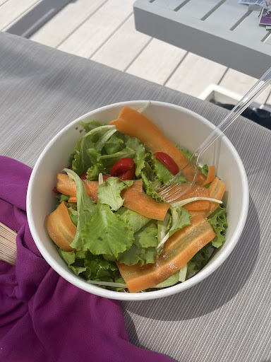 Food quality as in other reviews is poor (and sadly at the actual club too, not just the restaurant). 7 EUR salad of lettuce, carrot, and tomato was a joke. Everything served on plastic plates and cutlery, and not cleared away by the staff. Patrons also have to pay to use the beach showers?!