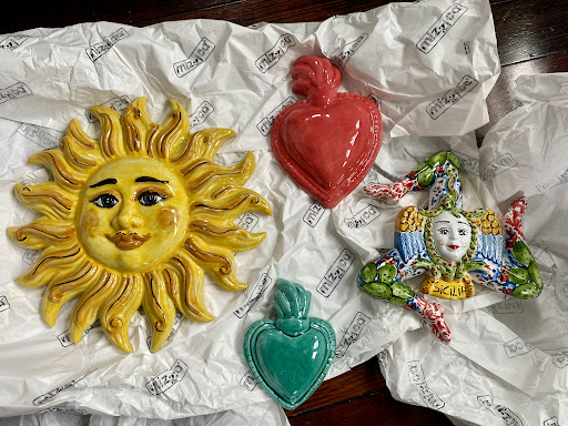 Let me wax poetic about the many ways Mizzica went to extreme lengths to make me a happy customer: back in September 2024, we stumbled upon Mizzica's storefront in Catania. It was simply gorgeous with beautiful artifacts and mementos of Sicily and Catania. As a fierce Catanian-American, every object at Mizzica evoked a tear in my eye. The forms, colors and shapes of the handcrafts reminded me of grandparents receiving dusty packages of handiwork sent from family on that beautiful island. Steve really loved some beautifully crafted "Cuore" that were in Mizzica's window. I dissuaded him from purchasing these pieces : my plan was to return a little later and purchase them for him as a gift. It turned out I could not return to make the purchase and we spent the next few days looking for something similar elsewhere in Sicily. We had no luck and Steve was so sad to not have these artifacts to take home. When we got back home, I wrote Daniela at Mizzica and asked her to mail me some of these ceramics. She wrote back immediately. She warned me that shipping would be insanely expensive ( as did every other shopkeeper in Sicily). Indeed the cost of shipping would cost 5X more than the price of the actual artwork. Daniela advised that I ask a friend or family member make the purchase for me at her store . Then my friend could mail me the objects privately for much less than Mizzica would have to charge. I was not in a position to ask for this favor, so I spent several weeks agonizing over the shipping price. I finally decided to ask Mizzica to ship the ceramics to me. As luck would have it, by the time I made this decision, the pieces Steve loved were sold out, and there were no more available. So with my consent, Daniela asked the artisans to make a set of new pieces for us. This was a labor and time intensive project and took 6 weeks to complete. Mind you, up until this point, all Daniela's and the artisans' hard work was done in good faith. I had made no deposits, no down payemts: just requests. Once the ceramics arrived at Mizzica, Daniela sent photos to the pieces to ask if I was happy with them. Only then did she produce a bill. She fostered me through every step of paying for them ( who knew it was so hard to make a purchase from the US in Euros ??). she then lovingly wrapped each piece in tons of bubble wrap, batting and more, and insulated the entire box for shipping. The ceramics arrived in just a few days, looking resplendent. I just unpacked the box today and was wowed with just how beautiful the Cuore are. The "trinacria" is gorgeous and the smiling "sole siciliano" is beaming down at us on a dreary Boston day. My aching Sicilian American heart feels renewed today. Steve is thrilled to pieces with the ceramics. If you have a chance, get to Mizzica! You will love their wares. And give Daniela a big hug of...