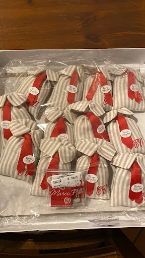 Read moreExcellent experience with the Ricameria Marco Polo and Sig.ra Amore. The finished project, linen pouches beautifully embroidered, containing Jordan almonds, for our son’s wedding, turned out perfectly. A wide selection of choices were available on the beautiful website. Communication with Sig.ra Amore was impeccable. She shipped the “bombonieri” to us in California with no problem. A very professional business. Careful attention to detail and top quality. I cannot recommend Ricameria Marco Polo...