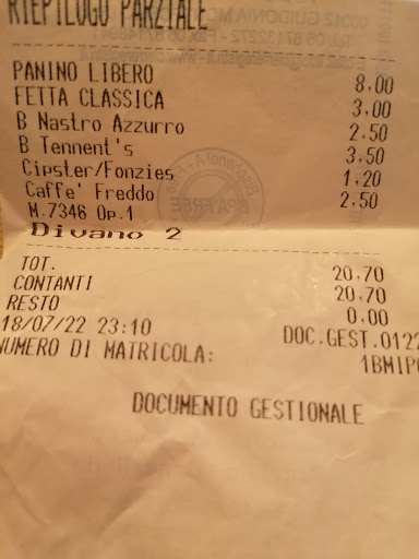 Read more3 corona e 1 spritz 23 euro...vado a pagare con carta, alla cassa mi viene detto che non funziona il pos (sarà vero?), e che c è un bancomat lì vicino...io come un cretino vado al bancomat a 200 metri di distanza, prelevo (non essendo la mia banca pagherò anche la commissione per il prelievo) torno,la persona alla cassa prende i 23 euro, senza togliere neanche un euro, e invece di darmi lo scontrino fiscale mi da la comanda...quindi io per questo personaggio ho pagato 23 euro più commissione bancaria,più 400 metri a piedi e tutto in nero...complimenti, tornerò solo per vedere se il...
