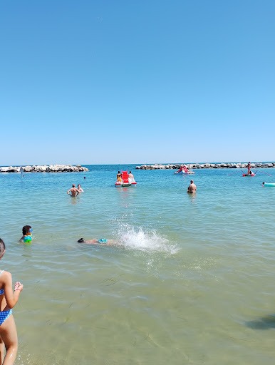 Read moreSono tornata dopo anni in questo lido, che è l'unione di sei bagni! Molto grande pertanto la porzione di spiaggia occupata e il numero di lettini e ombrelloni. Forse troppo ravvicinati. Lo ricordavo migliore ma non ho pretese, per pochi giorni va benissimo. Tuttavia vanno rilevate alcune cose migliorabili: 1 solo lavapiedi prima di uscire dalla spiaggia è insufficiente, vista la grandezza dello stabilimento balneare e il numero di utenti giornaliero; 2 docce (1 calda e una fredda) sono insufficienti per i motivi sopra detti; la piscina non è molto grande, se si tiene conto che sono ben 6 i bagni riuniti qui e si riempie molto in fretta di bambini, genitori e ragazzini che giocano a palla (ne dovrebbe essere limitato l'uso in piscina). Tre piccole vasche circolari idromassaggio a pagamento (3 euro a testa per 15' non è poco). mancano posacenere agli ombrelloni Punti positivi: -pulizia uso gratuito cabine per riporre materiale gonfiabile di ogni tipo, giocattoli, ecc. toilette maschi/femmine (tre e tre) attrezzi palestra al coperto; risveglio muscolare al coperto ogni mattina con trainer; acquagym a giorni alterni; -miniclub e laboratori per bambini Servizio bagnino sia in piscina che in mare. Ci sono altri sport praticabili sulla spiaggia ma sempre occupati (pallavolo, bocce...). Per giocare a ping-pong si devono avere proprie racchette e palline (queste ultime si possono comprare in loco). Numerosi giochi per i bambini (altalene, scivoli, casette, ecc ). A Cattolica ogni bagno cerca di superare l'altro e quando si hanno bimbi si cerca il giusto rapporto...