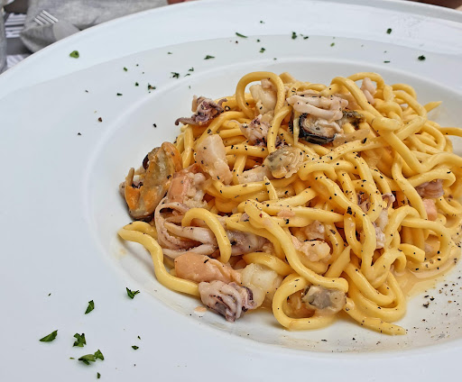 Premetto che questa vuole essere una recensione di incoraggiamento perché tutti sono stati molto gentili e disponibili però un consiglio da cliente vorrei darlo... sarebbe carino che i camerieri si organizzassero nel dividersi i tavoli che servono perché pochi minuti dopo aver ordinato ci è stato chiesto da una cameriera se volessimo il dolce e dopo aver finito l'antipasto un'altra cameriera ci ha chiesto se volessimo il caffè...a parte questi arrivi "a caso" del personale... purtroppo i primi piatti che dovevano essere di pasta fatta a mano si sono rivelati abbastanza deludenti con le trofie gommose e il sughetto di pesce aimé ricordava moltissimo un sugo surgelato acquoso e insipido...un po' meglio sono stati gli spaghetti alle vongole che erano più saporiti e ben agliati ma di certo non si può dire essere fatti in casa ed erano scotti, anche la tartare di tonno era insapore perciò direi anche questo pesce surgelato...le cozze invece mi sono piaciute..Cmq, forse un inizio stagione un po' da collaudare visto il primo caldo e il primo affollamento del mese di maggio però purtroppo per quel che abbiamo speso 81,70€ la qualità del pesce non era...