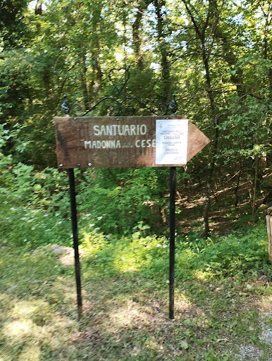 CHIUSO: PER PERICOLO CADUTA MASSI IL SANTUARIO E' CHIUSO! Dopo aver visitato la Certosa di Trisulti abbiamo deciso di dirigerci prima al Santuario "Madonna delle Cese" e poi all'Eremo di san Domenico, tutte e due poco distanti dalla Certosa stessa. Prima cosa da annotare: all'inizio della biforcazione stradale non vi è alcun cartello, o carta stampata, o segnalazione, che il santuario sia chiuso. Vi è soltanto un cartello con la descrizione e la storia del santuario stesso. Dopo circa 30 minuti in discesa (poco più di 1 chilometro su carrareccia ben segnata e cementificata, praticamente una strada), immersi totalmente nella Natura e con scorci stupendi verso la gola e verso la Certosa, arriviamo fino al Santuario stesso e soltanto al cancello scopriamo questa amara verità: chiusura per pericolo caduta massi. In ogni caso, vi consiglio di fare questo sentiero sia per la bellezza paesaggistica e sia perché comunque il Santuario si riesce a vedere (da lontano). Il ritorno è su stesso sentiero, tutto in salita. Circa 1 ora massimo 1 ora e un quarto, adatto a tutti.