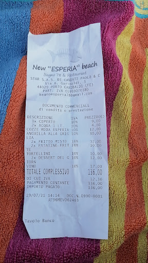 Read more19-7-21 è l'ora di pranzo e il momento di scegliere dove andare, essendo in spiaggia la prima scelta deriva dalla vicinanza e questo locale è il bagno affianco al mio, premesso questo arrivo subito alla mia personale recensione: Come stabilimento balneare, ha tutto ma lontano da essere bello nuovo giovanile e attraente mi fermerei a 3 su 5 come voto, il ristorante è rialzato , questo comporta ad avere pochi tavoli ma favorisce la piacevolezza di vedere il mare mangiando. Le portate prese un piatto di cozze buone e abbondanti, un piatto di tortellini alla panna buoni e sufficienti nella quantità, due fritti di pesce , portate normali e buoni anche questi, due porzioni di patatine fritte , buone ma ne bastava una vista l'abbondanza, un pezzo di anguilla servita con la classica polenta , nulla da dire anche su questo, buona, come dolci fra quelli elencati sono stato incuriosito dalle creme catalane sia ai frutti della passione che al pistacchio, 6 euro a dolce ma non buoni consiglierei di toglierli voto 1 su 5, con una bottiglia di prosecco e due di acqua sono arrivato a 136 euro visto che qua il coperto costa 3 euro a persona. Quindi mangiato bene il pesce, dolci da tralasciare magari leggermente caro in una location datata voto mio 3,5 su 5 Non essendoci questa possibilità metterò 3 , in quanto a questo prezzo si può mangiare bene ugualmente in una location...