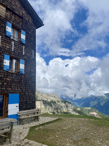 We hiked to this rifugio from Pozza di Fassa taking about 4 hours. It has a nice view and good red glow which to Rosengarten is known for at sunset. They have pay showers and you need a sleeping bag liner. We were in the dormitory and I was nervous about having to go down steep stairs at night to use the bathroom but it ended up being now problem. There toilet is a squat hole in the floor just for your information. This location had my least favorite food and breakfast is very minimal compared to the other rifugios we stayed at and cost 7,50 if you don't do half board. The did have a place with lines to dry your clothes both inside and out but I found my quick dry did not dry in the cool moist days of early September. ||||If you are interested in doing ferratas there are two available very close by one considered easy and one medium. Though I had never done one I did the medium with a guide and did fine. The great thing about starting out from this hut is that we could leave our pack at the hut and didn't have to carry 15 pounds on the ferrata. If you are interested in doing ferratas in the Dolomites this would be a good...