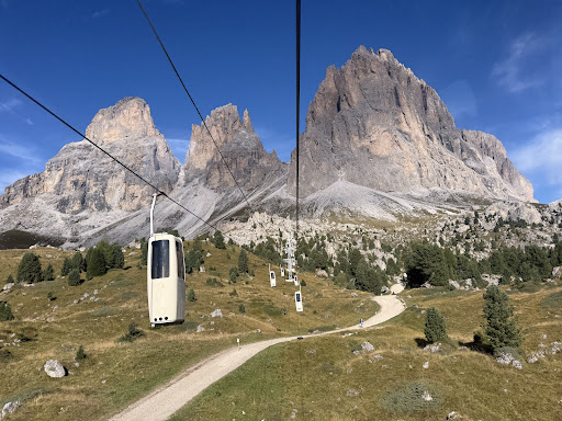 We caught this very unique cable lift up Sassolungo, and it was an experience! The mountain itself had incredible views in both directions, and appears to be an excellent spot for the via ferrata / rock climbers. The view of the mountain itself at the top was up so close, it is like looking at the Empire State Building from the front door, but great from a distance, and the views of the other mountains in the region. A unique experience, I would definitely not...
