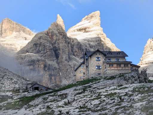 Stayed at the cabin. The establishment is physically connected to the funicular so as soon as you get out you see the refuge . Well equipped . Has a bar restaurant and breakfast place. I wouldn’t consider it a refuge . Came from Milan and it was a long drive because you are stuck on single lanes...