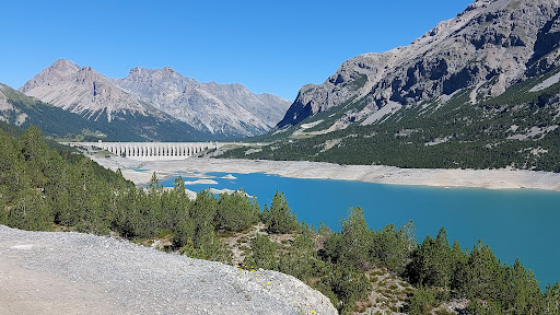 Bellissimo lago a 2passi da Bormio raggiungibile da tutti. Dopo la salita a tornanti alle Torri di Fraele (bella da fare in bicicletta) con vista super sia verso Bormio sia verso la Valdidentro, c'è un parcheggio libero, in alternativa si può procedere in auto sino alla centrale a2a all'altezza di Diga e Lago di Cancano (5€ in estate) dove si possono noleggiate bici (6€ora mtb, 6/8€ora emtb da bimbo/adulto) e parte il bus navetta ogni ora (1€tratta). Il giro completo sono 16 km, adatto a tutti poiché dislivello modesto. Per il giro completo impiegate 1,30-2.00 ore. Non perdervi la parte con gli chalet sul 2o lago (S. Giacomo) perché è bellissima! In cima al lago S. Giacomo c'è un'ottima area picnic attrezzata 🔝 di tutto e cmq rifugi in cui mangiare in diversi punti! Colori indescrivibili... Gita obbligata se siete in zona. E se avete gambe, dai laghi partono una miriade di percorsi per mtb. Mi ha rubato il cuore nonostante la giornata con meteo così cosí (siamo scappati alle 13.30 per pioggia)!...