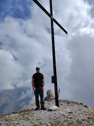 Monte Pegherolo (2370 m), salito il 9 Agosto 2021 dalla cresta Est da San Simone. Percorso: San Simone, Baita del Camoscio, Passo S. Simone, Bocchetta dell'Erba, Monte Pegherolo via Cavallino. Durata: 3.30 ore in salita. 3 in discesa. Difficoltà: A, F+. Splendida traversata in cresta di circa 2 km. Sentiero facile fino al Passo San Simone. Successivamente, prendendo il sentiero verso sinistra poco prima del Passo (direzione M. Cavallo) si giunge alla Bocchetta dell'Erba dopo un breve e ripido canalino detritico. Da qui inizia il tratto in cresta, superando un tratto attrezzato in discesa (II grado di arrampicata con catena, consigliato l'imbrago per i meno abituati), e salendo al Cavallino. Qui, dopo un altro tratto attrezzato scivoloso (I+), si passa a fianco a piccoli spuntoni rocciosi, con forte esposizione e difficoltà che richiedono molta attenzione. Poi la cresta si "tranquillizza" fino alla Piodessa, dove diventa strettissima ma aggirabile. Dopo qualche punto esposto si arriva agli ultimi tre tratti attrezzati con catene per arrivare in Cima. Il primo è il più tecnico (II+), il secondo è breve ma da non sottovalutare (II) e posto successivamente ad un traverso decisamente esposto e scivoloso e qualche roccetta di II inspiegabilmente non attrezzata (potevano far partire la catena almeno 10 metri sotto, sennò potevano non mettere nulla). Terza catena in un contesto più scenografico, ma decisamente facile ed intuitiva (I+). Percorso, in generale, spettacolare e divertente. Consigliato a chi vuole approcciarsi...