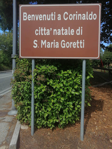 Mi sono recata a Corinaldo non solo per ammirare la bellezza del borgo, ma soprattutto per motivi legati alla mia religiosità: desideravo ardentemente visitare la casa natale di Santa Maria Goretti. Avevo otto anni (ora ne ho 65) quando mi fu regalato un libretto con la sua storia. Ne rimasi così colpita che la lessi senza pause e la rilessi centinaia di volte in seguito: nella mia ingenuità infantile mi chiedevo come un uomo avesse potuto uccidere una ragazzina che diceva di amare. E a quei tempi l'attenzione non era per niente rivolta al problema della violenza sulle donne e sul femminicidio: una storia tragica ancora attuale! È stata la prima tappa della mia visita e ho raggiunto la casa natale in auto, percorrendo, a poca distanza dal centro storico del paese, circa un chilometro di una piccola strada di campagna della contrada Pregiagna. Non mi aspettavo di trovare un lungo ed ampio piazzale in cui poter parcheggiare gratuitamente l'auto. Ho notato anche un centro di accoglienza per i pellegrini, che possono rifocillarsi, tavoli e panche, un piccolo parco giochi per i bambini. Grande silenzio e senso di ordine e di pulizia. Da una piccola scalinata si accede alla casa dove la famiglia Goretti visse fino al trasferimento a Nettuno (Roma). È rimasta intatta e si presenta come una semplice abitazione contadina in mattoni, a due piani. Vi si arriva da un giardinetto antistante ben curato, con rose bianche ed altre piante. L'ingresso è libero e non ho visto un custode. È possibile fare offerte per acquistare coroncine o immaginette Al piano terra lo spazio più ampio è quello in cui sono ancora conservati elementi della stalla, mentre l'adiacente locale, dove vi era una cantina, è stato trasformato in una piccola cappella dedicata alla santa. Al piano superiore si trovano la tipica cucina delle abitazioni contadine con oggetti di uso quotidiano, un grande camino al centro ed altre due piccole stanze caratterizzate dalla presenza di travi di legno sul soffitto. In una recensione letta, un visitatore si lamentava della presenza eccessiva di ragni e ragnatele: ho fatto ben attenzione a guardare dappertutto e non ho visto né un ragno né una ragnatela. È più probabile trovarne a casa mia! Nel locale a sinistra, rispetto all'ingresso, c'è la camera da letto dei coniugi Goretti: qui, il 16 ottobre 1890, nacque "Marietta", come la santa era chiamata dai famigliari. Tutti i mobili e gli oggetti sono quelli originali; sul letto ho visto deposto un mazzo di fiori. Nell'altra stanza sono conservati il telaio e tutto quello che occorreva alla mamma Assunta per tessere. Non mi soffermo a descrivere i miei sentimenti durante la visita. Sono uscita con le lacrime agli occhi e con il cuore che batteva per la grande...