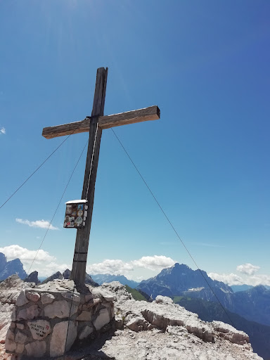 Read moreSalita al monte Averau x la breve ferrata,dal termine in 15 minuti seguendo gli ometti si arriva alla cima molto panoramica,a 360° un coronamento di bellezza unica al mondo,dalla Tofana,al Lagazuoi,alle 5 torri,Lastoi de Formin,Croda da Lago,Nuvolau, passo Giau, croce di vetta con libro x firmare. Risalita lo scorso anno in una bella giornata di Luglio, la salita gustata poco perché troppa gente, soprattutto a causa di persone che pensando di andare a fare una scampagnata sono rimasti incrodati già all'attacco della breve ferrata! Non parliamone del rientro incrodati e impanicati sempre nello stesso punto.La gente deve cominciare a capire cosa è in grado di fare, perché non è possibile trovarsi le flotte di persone incapaci che provano la prima volta ad approcciarsi ad una ferrata convinti sia una passeggiata, sì perché si arriva con la funivia, si noleggia l'imbrago e si parte e poi???? La Cima nonostante l'affollamento la si può gustare stando in disparte...