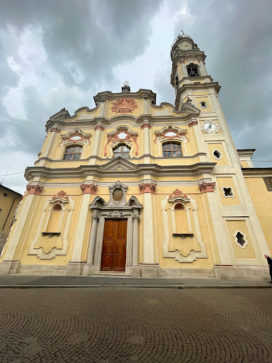 Read moreEdificio provvisto di una doppia facciata risolta in modo ardito sospendendo parzialmente, l' angolo divisorio si articola con supefici curvilinee memori del Roccocò europeo e pertanto originalissime, inusitate in ambito lombardo. Ad un primo ordine schermato da paraste corinzio intervallate da nicchie con triplici modanature subentra un secondo ordine con ampie finestre articolate con un monumentale baldacchino aggettante. A coronamento un frontone convesso completato da decorazioni in altorilievo. L' interno vanta una cupola in prospettiva illusionistica sormontate il presbiterio affine ai fratelli Galliari e ragguardevoli tele di Pompeo Batoni e Callisto Piazza. Pregevole l' organo e l' apparato statuario. Un raro esempio di totale integrazione tra le tre arti fondamentali. Prof. Ermanno Paleari, storico...
