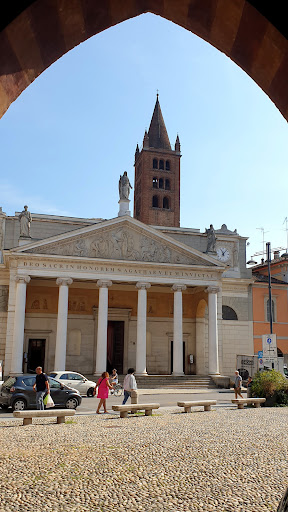 Read moreVista solo esternamente in data 26/07/2024.Chiesa originaria ,risalente al 1077 ,fu costruita in stile romanico nel corso del XII secolo.Della chiesa originaria rimane solo il campanile d'impianto quadrato ,con fregio di archetti pensili .La chiesa romanica fu rifatta a sua volta nel 1496 dall 'architetto De Lera.dividendola in cinque navate.,mentre la facciata attuale in stile neoclassico con pronao su colonne di marmo bianco e frutto di un rifacimento del 1815 dell 'architetto Voghera .All'interno ,zona presbiterio ,affreschi del Campi,quattro episodi della vita...