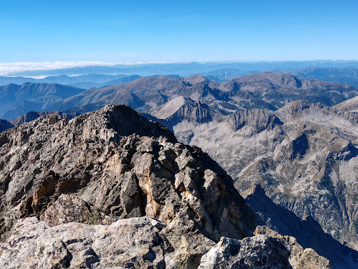 Read moreDal passo dei Detriti si arriva sull'ultimo traverso (normale Argentera Sud), molto esposto ma con piccoli passaggi di difficoltà di 2° (passaggi chiave con spezzoni di corda fissa appena sostituita. L'intero traverso fino alla cima Sud è attrezzato con spit e moschettoni nuovi (attrezzato da guide alpine poco tempo fa) per permettere la progressione in conserva.