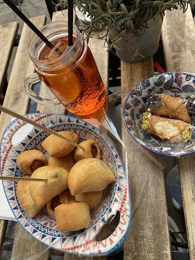 Read moreFooditaly è un bar pasticceria dove è possibile fare aperitivo, bersi un caffè, ma soprattutto mangiare degli ottimi cannoli. Questi possono essere farciti in modi diversi, molto buona è la classica ricotta, ma da provare sono anche la crema di nocciola/pistacchio. Io ho provato un cannolo con metà ricotta e metà crema di nocciola e lo consiglio vivamente! Volevo provare la crema di pistacchio, essendo un grande amante di questa frutta secca, ma mi ha spiegato la ragazza che ci serviva che in estate non sempre lo hanno, perchè con le alte temperature queste creme, che sono molto oleose, tendono a sciogliersi, o l'olio a separarsi dalla crema andando in superficie(provate ad immaginare il burro di arachidi). I cannoli non costano poco, infatti costano 4€, ma sono in linea con i prezzi di Ferrara, e soprattutto bisogna ricordare che si è in centro e si ha il servizio al tavolo. Se la recensione vi è stata utile...