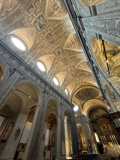 Read moreUno scrigno colmo di dipinti e sculture che per qualità e numero fa di questa chiesa una delle più importanti e significative di Ferrara. Nei pennacchi delle arcate della navata centrale si possono ammirare le mezze figure di santi e sante Carmelitane (1595-96) fattura dello Scarsellino (Ippolito Scarsella, noto con il nome d'arte di Scarsellino (Ferrara, 1550 o 1551 – Ferrara, 28...