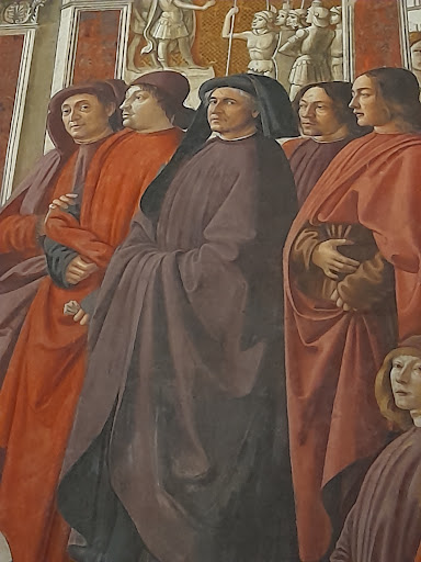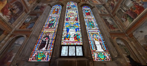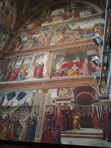 Read moreLa Cappella Maggiore o Cappella Tornabuoni si trova al centro della chiesa dietro l'altare maggiore. Il Crocifisso centrale è un'opera del Giambologna. Il coro conserva un importantissimo ciclo di affreschi di Domenico Ghirlandaio, al quale probabilmente lavorò anche un giovanissimo Michelangelo Buonarroti, allora nella sua bottega. Sono rappresentati episodi della Vita della Vergine e San Giovanni, ambientate nella Firenze contemporanea e con numerosi ritratti dei committenti e di personalità fiorentine dell'epoca, caratteristica tipica del Ghirlandaio. Sul muro posteriore sono raffigurate le scene di San Domenico che brucia i libri eretici, Il martirio di San Pietro, L'annunciazione e San Giovanni nel deserto. Sugli spicchi della volta sono rappresentati gli Evangelisti. Le vetrate policrome furono eseguite nel 1492 da Alessandro Agolanti su disegno di...