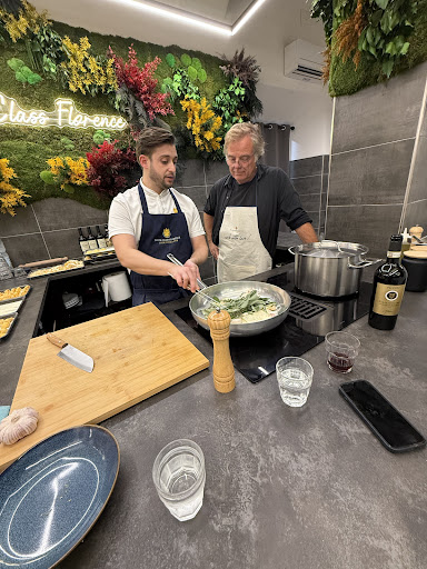 Read moreMy husband and I greatly enjoyed our evening class with Marco Benevento, co-founder of Pasta Class Florence. We were impressed with the space its layout, cleanliness and the preparedness done for the ease of both instructor and students. Marco is professional and easily relates to his students to encourage them in the cooking and draw them into the cooking community. Marco shared his experience becoming a professional chef that started with a love of cooking good food that was nourished and mentored by his grandmothers and further explored and challenged in school and the Michelin starred restaurants he worked in. Mark got a chance to work with Marco at the stove preparing a sauce as did other students and we all prepared several pastas that we then cooked and ate! The students shared wine, stories and food and we all left excited to try cooking pasta from scratch at home! We live on a boat and are thrilled to now have the option to bring fresh pasta to our table! Mark is making pasta as I type this review! We wholeheartedly thank Marco for his pasta and sauce making pedagogy that is easily acted on and understood. Many top cooks can make excellent food but not all can teach others the skills and knowledge, Marco does it all while keeping you laughing. We highly recommend...