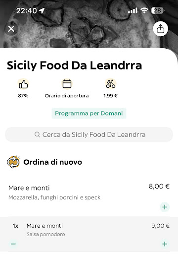 I ordered on JustEat. I waited outside. The order never came and the delivery driver marked that the order was delivered. I called the store and the owner was extremely rude. Told me I was not outside the building. I can’t get my money back and have no food. Don’t order from Sicily Food da Leandrra they are a waist...