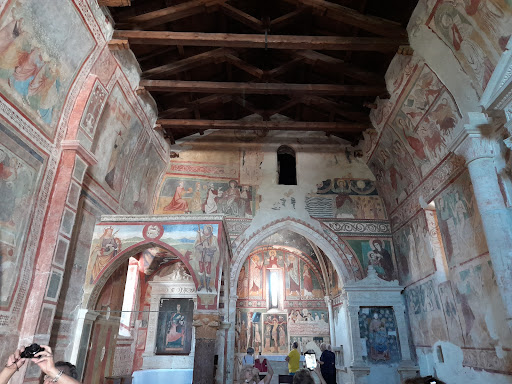Read moreUn vero "tesoro" nascosto dell'arte medievale abruzzese! L'interno della chiesa è affrescato con disegni del XIII secolo. Le immagini del lato dx della navata sono coeve con la costruzione della chiesa (raffigurazioni del vecchio testamento) mentre quelle sul lato sx (raffiguranti la vita della Madonna, secondo il suo vangelo) sono state fatte in epoca successiva! Sul fondo della chiesa la raffigurazione del Paradiso e dell'Inferno (prima della "visione" dantesca degli stessi) Da notare l'asimmetria dell'abside della chiesa, disallineata al fine di permettere l'osservazione del "feudatario" che ne ha consentito l'edificazione (cavaliere con scudo celeste a dx della...