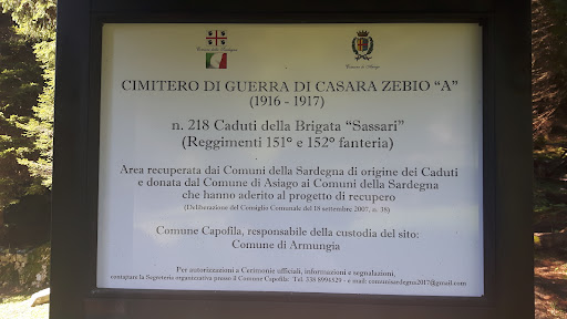 Read moreLuogo molto suggestivo, vero e proprio museo a cielo aperto. Tutta l'area è considerata sacra in ricordo dei numerosi soldati caduti durante la prima guerra mondiale. Sono state recuperate trincee e baraccamenti e recentemente sono state aggiunte altre 150 croci di soldati della famigerata Brigata Sassari caduti tra il 1916 e il 1917 al già esistente cimitero, donato in concessione dal comune di Asiago alla Sardegna nel 2007, per far riposare i giovani soldati sardi in terra natia. Un vero e proprio gemellaggio di pace ove la bandiera veneta sventola insieme a...