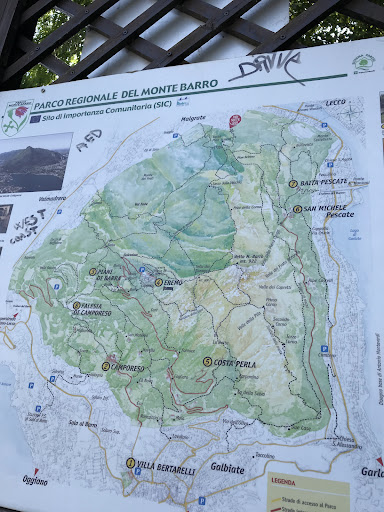 📍- Da Lecco (al termine del Ponte Azzone - Visconti ci si immette in una stradina con una cartellonistica che determina l'effettiva entrata nel Parco Naturale del Monte Barro. Si continua su sentiero verso Pian di Sciresa, passando per il Cippo degli Alpini e per il Sasso della Vecchia (con la costante vista verso il lago ed i giganti delle Grigne e del Resegone). Proprio in prossimità del Sasso della Vecchia non dovremo proseguire a sinistra (verso Prati della Corna N.304) ma continuare su agevole sentiero che ci condurrà verso l'Eremo di Monte Barro (ultima parte su strada asfaltata, qui inoltre è possibile anche sostare). La restante parte verso la vetta è su sentiero, fatta eccezione della parte finale su "facili roccette" in cui è richiesto l'utilizzo di entrambe le mani per salire in sicurezza, dunque andremo a riporre nello zaino eventuali bacchette/bastoncini. Si può riscendere per il medesimo percorso, facendo però attenzione e proseguendo con calma nella discesa nel tratto iniziale in cui bisogna disarrampicare)