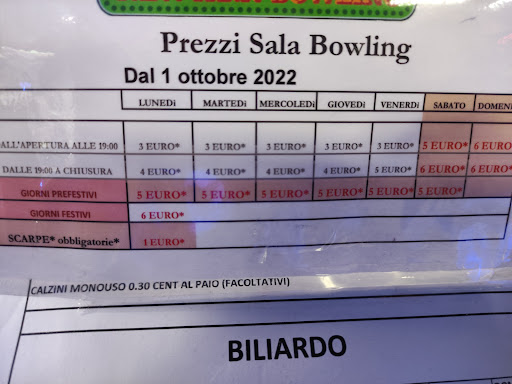 Peccato che una struttura così sia in mano a degli incompetenti ed arroganti. È la prima volta che faccio una recensione così negativa ma sinceramente non ho mai visto un locale con persone così arroganti e poco professionali. Siamo arrivati alle 23:50 con l’intento di passare una serata diversa ma purtroppo non è stato così. Volendo giocare a bowling solo 8 persone abbiamo chiesto se si potesse fare una partita su due piste in quanto non era possibile su una sola. Il commesso molto scortesemente ci ha detto che ogni pista era per 3 persone ma poteva farci giocare in 4 solo se avessimo pagato entro mezzanotte. Il tempo di raccogliere i soldi (dato che nessuno poteva pagare con la carta e quindi ci aveva obbligato a fare un solo pagamento) erano le 00:02 e molto scortesemente il commesso si è rifiutato di farci giocare perché lui doveva chiudere all 1:00 invece che alle 1:30 (come era specificato sul sito) e quindi in 4 durava troppo. Dopo questa risposta abbiamo deciso di cambiare gioco e provare con il biliardo ma verso 00:30 il commesso ci ha invitato ad uscire poiché doveva chiudere. In poche parole invece di chiudere all 1:30 come previsto, siamo stati obbligati ad andarcene verso mezzanotte e mezza. Il locale tutto sommato è carino ma purtroppo è gestito da persone veramente maleducate. È stata la prima volta che siamo andati in questo locale ma sinceramente non vorrei mai più mettere piede li dentro.