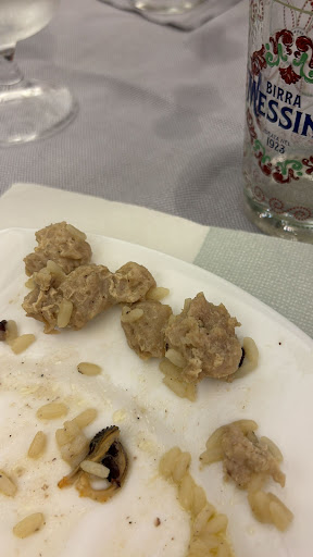 Un disastro. Appena arrivati il parcheggiatore ci dice che abbiamo sbagliato serata e che facevamo in tempo ad andarcene. Il mio amico risponde che avevamo già pagato... Annuisce e ci lascia entrare. Mi dice di parcheggiare in doppia fila , io mi oppongo e mi manda giù da una discesa a cercare posto. Entriamo, arriviamo ai tavoli e ci guardano tutti meravigliati. Sembrava di stare in una casa di riposo. Arriva l'antipasto ( parmigiana, tonno semiscottato, pane bianco e salsa). Nel menù c'era scritto antipasto di mare e di terra. In realtà era tutto in un unico piatto. Il mio amico trova un capello nella parmigiana... Del cameriere non poteva essere perché era calvo. Forse in cucina facevano un spuntatina ai capelli dello chef. Arriva il primo di mare... Risotto con avanzi di mare. La mia futura moglie trova Delle pallottole di non si sa cosa nel piatto (foto allegata) che pensa bene di accantonare sul bordo. Avevamo un menù fisso baby quindi con una cotoletta con patatine. Scam anche qui. La cotoletta era un comunissimo cordonblu che si può comprare da igood surgelato a 0.50€ l'uno. Il resto della clientela andava dai 60 anni in su. C'era una signora con la bombola d'ossigeno attaccata alla sedia. Mancavano le carte da burraco e la birra sui tavoli. Arriva la frutta. Il melone sempre della mia compagna sembra quasi che fosse stato morso perché mancava un pezzo ... Chiedo alla cameriera info in merito. Lei mi dice che stato tagliato in quel modo. Io le dico che però sembra un morso. Me lo faccio cambiare. L'anguria era di un rosso scurissimo tanto che sembrava la tagliata di carne che si prende alla tradizione a Sammichele. Camerieri gentilissimi per carità ma la gestione del cibo è stata da ufficio inchiesta... Capisco il prezzo irrisorio della serata ma fino ad un certo punto. Quando mangiavo a pranzo alle elementari a scuola mangiavo meglio. Siamo finiti al McDonald il 14/08. Scammati. Voto...