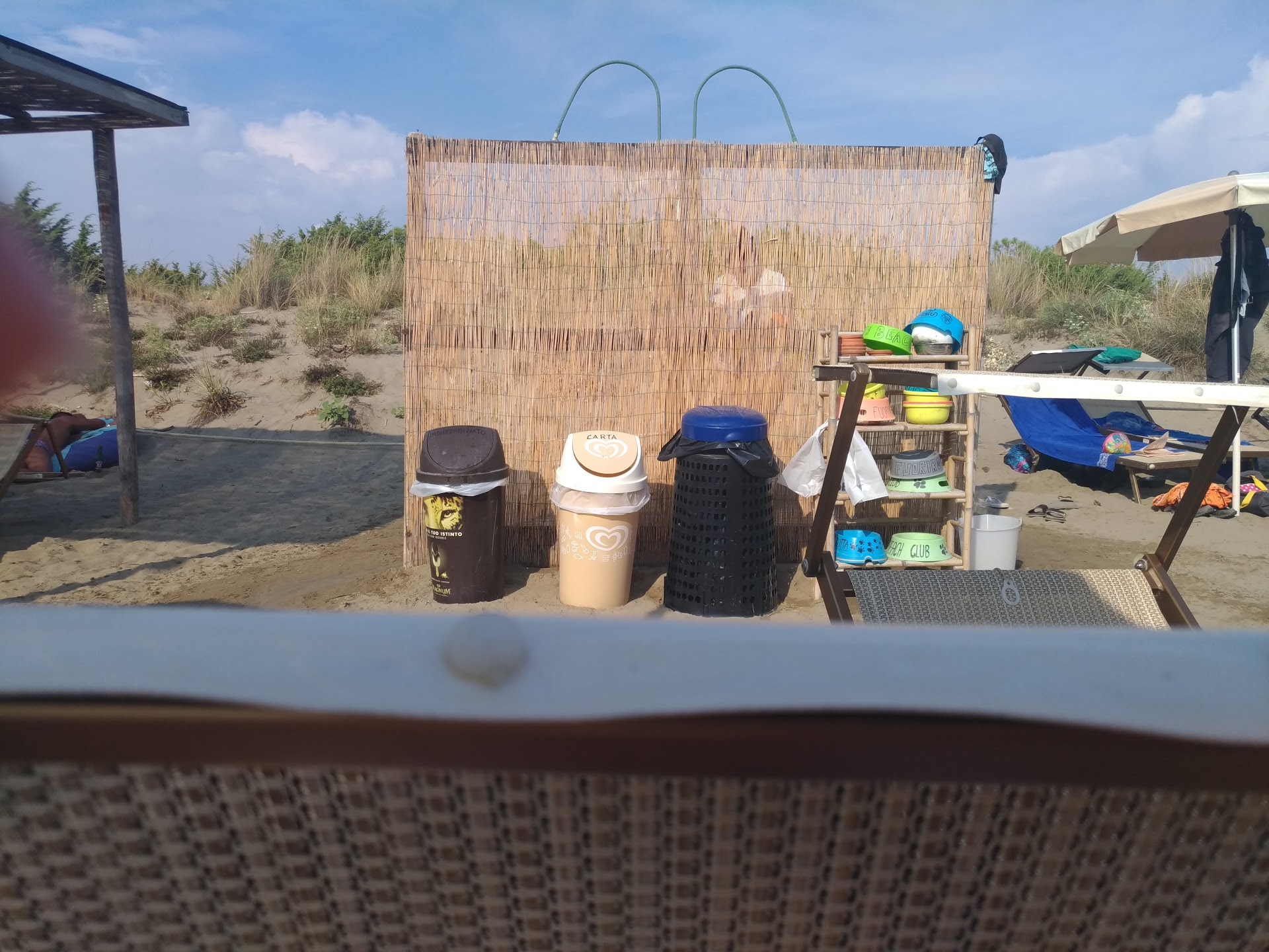 Contenta di aver trovato uno stabilimento in cui portare il mio border collie beneducato, ma vorrei proporre alcuni spunti di miglioramento: gli ombrelloni andrebbero distanziati maggiormente e, per quanto carini, sostituiti con ombrelloni più grandi (carina l'idea di farli impagliati, il problema è che riparano poco dal sole) oppure con zone recintate per i cani più reattivi, alcune ciotole per l'acqua sono rotte e la fontanella con doccia per umani è infestata dalle vespe. Nonostante il regolamento parli di non fare entrare cani con problemi di aggressività, salute o condizioni che minino alla quiete collettiva (vedi: calore), la disposizione non viene rispettata, pertanto mi sono trovata un paio di volte a chiedere di essere spostata per non fare soffrire il mio maschio intero, avendo una cagnolina in calore esattamente nell'ombrellone di fianco. Grazie al cielo il mio cane si è limitato a soffrire un po' e a pigolare, ma ho visto maschi entrare in competizione o diventare aggressivi. I cani possono fare il bagno a tutte le ore, ma solo nella spiaggia libera accanto, dove possono essere anche lasciati senza guinzaglio: in teoria andrebbero comunque supervisionati, in pratica mi sono trovata a dover gestire interazioni con cani sconosciuti anche allontanandoli o mettendo in sicurezza il mio per evitare morsi (ma qui è colpa dei proprietari che si ostinano a ripetere "ma tanto il mio è buono" ignorando completamente la gestione delle risorse che potrebbe rendere aggressivo e/o competitivo anche il cane più buono del mondo). Ci sono a disposizione anche 4 isole più grandi ma meglio prenotarle con anticipo, la parte attrezzata è complessivamente pulita e curata, il personale gentile e sempre pronto a fare fronte a tutte le richieste. Noi ci siamo trovati bene perché abbiamo lavorato molto sul nostro cane per permettergli di essere sereno e interagire correttamente in ogni situazione (ma potrebbe non essere così per tutti) e perché siamo stati accontentati quelle due volte che abbiamo chiesto di essere spostati causa femmine in calore. Spero che i suggerimenti elencati qui sopra vengano accolti nell'ottica di una critica...