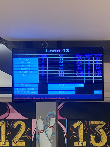 Read moreUn luogo molto bello dove trascorrere una serata con gli amici per divertirsi e condividere tanti bei momenti, Per quanto riguarda il reparto delle pietanze nonostante molta gente i piatti vengono serviti con la giusta velocità e il buon gusto trall'altro con prezzi molto accessibili, invece coloro che lavorano fanno bene il loro lavoro ma vorrei dire in particolare il signor Pino Vecchio (colui che sta in cassa delle pietanze con la felpa arancione) nonostante un disguido e disappunto con lui è stata una persona molto onesta senza pensarci due volte ,con i giusti toni e la sua gentilezza con una persona che neanche conosce .Nel rapportarsi è stato in grado di comportarsi subìto con le migliori intenzioni,con gentilezza, simpatia il problema creatosi che con piacere posso dire ci siamo venuti incontro subito dopo aver parlato. Per il resto di coloro che lavorano nella categoria bowling: sono lavoratrici che lavorano in maniera molto fluida gestendo velocemente il lavoro. Per il resto buone Feste e grazie a coloro che contribuiscono ad ambienti come questo per trascorrere il tempo con le persone che amiamo e che ci divertiamo in presenza di...
