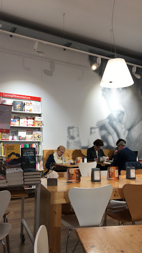 Personale preparato e accogliente. Un po' meno piacevole la situazione quando c'è ressa, ma si possono facilmente intuire quali siano i periodi "caldi". Al piano seminterrato si può godere di due punti di lettura, uno con comode poltrone e l'altro con un tavolo. A volte queste due sistemazioni di cortesia risultano insufficienti, ma ci si fa una ragione. In questo piano difficilmente è possibile connettersi a internet con la propria rete dati e non so se esista una connessione wifi. Al piano superiore, il pianp terra, gran parte dello spazio è occupato da una caffetteria dove è possibile sorseggiare un caffè o anche mangiare primi e secondi gustosi o fare ottimi spuntini dolci, salati e a base di frutta. Anche qui il personale è molto cortese, a differenza di chi negli anni ha usato in modo poco decoroso i bagni, costringendo la proprietà a richiedere un gettone per il loro uso. Nonostante sia una libreria di catena sembra comunque di stare in un luogo attento ai bisogni su misura dei clienti. Buona l'attenzione dedicata al fumetto e alla narrativa. Forse un po' meno forte la letteratura classica e la poesia (ma questa non credp sia una colpa da attribuire alla Feltrinelli). Lascia un po' a desiderare lo spazio dedicato alla musica e alle scelte sui video, ma è tutto compensato dallo spazio per i bimbi, che meriterebbe qualche seggiola in più, e dalle sezioni...