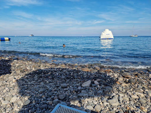 Read moreGreat beach. The staff are really friendly. For 30€ you are able to rent 2 sunbeds and an umbrella for the day. We arrived in the early afternoon, and without asking they reduced the price for us. Also, in this price they include shoes, an inflatable matress for the water, as well as a few others. There is also a climbing wall and a trampoline in the sea that is all free to use. There is a bar and restaurant. Even when the restaurant was closed they offered to make a salad for us. Toilets are also available.