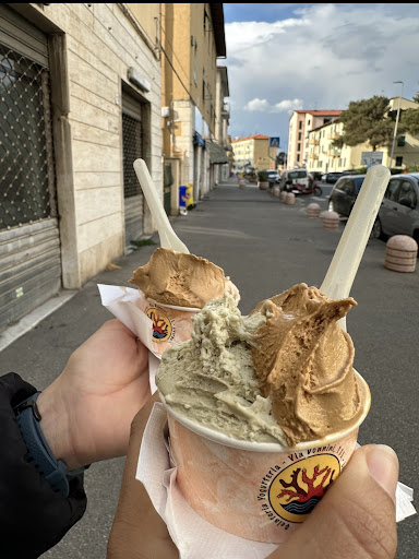 Read moreIl gelato abbastanza buono anche se i gusti alla frutta sanno poco di frutta e troppo di zucchero, i prezzi decisamente alti per il poco gelato che viene servito ma quello che veramente più infastidisce è la maleducazione e l'arroganza della proprietaria veramente inammissibile che una persona cosi possa stare a contatto con le persone e oltretutto sarebbe opportuno mettere guanti e cuffia in testa dal momento che spesso sta fuori ai tavoli e tocca tutto con le mani poi però va servire i gelati senza lavarsi...