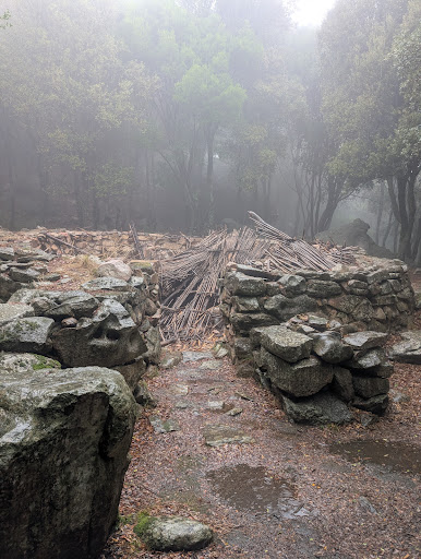 Capanna nuragica di 4000 anni fa. Atmosfera magica. Cenere del focolare a...