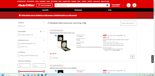 Read moreMi reco al media world vicino San Vito a Lucca per acquistare uno smartphone Z Flip 5 nuovo. Lo trovo in offerta come su sul sito a 849€. Chiedo al personale e un ragazzo ci comunica che è disponibile solo lavanda o grigio. Gli dico va bene e mi informo sulle modalità di pagamento. Ero dubbioso sul finanziamento e sull'assicurazione ma era tarda sera e accetto tutto. (essendo anche abbastanza tardi cerco di fare presto, considerato il giorno festivo di lavoro per me e anche per gli addetti alla vendita). Una ragazza prende quello che penso sarebbe stato il mio telefono dentro il classico gabbiotto antitaccheggio, dopo avermi aiutato a recuperare la mia tessera fedeltà. Opto per 300€ di anticipo con bancomat e il resto finanziato in 4 rate. La collega delle casse avvia la procedura di finanziamento e viene accettata. Va a controllare il telefono ma vede che la scatola é aperta e si pone la domanda se il telefono che avevo indicato e pensavo fosse "nuovo" era quello? Perché c'è un elastico? Domando io é nuovo? Scopro che mi stavano vendendo a prezzo intero 849€ un telefono ricondizionato (quando sul sito dei ricondizionati costa anche meno). Allorché mi stupisco e chiedo spiegazioni. La risposta dei vari addetti alla vendita è stata "ah ma io pensavo che lo sapesse, comunque è nuovo! é stato solamente cambiato lo schermo......" Rispondo: Ma stiamo scherzando? Secondo voi compro uno smartphone ricondizionato allo stesso prezzo del nuovo?" Io lo voglio nuovo rispondo. Dopodiché QUINDI, L'ADDETTA ne va a prendere un' altro. Questa volta nero anziché lavanda come volevo, ma senza dirmelo e anche questo aperto e secondo me ricondizionato nonostante ripetessero che era nuovo e costava anche di più (1000€ circa) non era sigillato. Decidiamo di annullare il finanziamento. Lo scontrino non era stato ancora emesso e il mio pagamento di 300€ ancora non avvenuto. Spero vivamente di essere contattato DAL DIRETTORE del punto vendita per chiarire ulteriori miei dubbi e perplessità riguardo questa vicenda e spero vivamente che il finanziamento sia stato annullato senza alcune ulteriori mie indagini. Non è accettabile un'esperienza d'acquisto del genere. Mai visto.