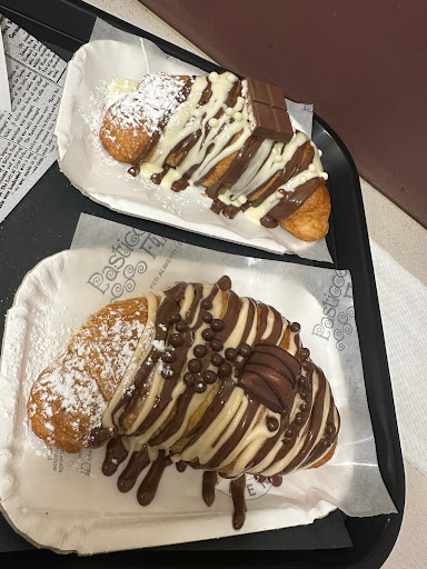 Cornetti, crêpes, milkshakes e altre brioches rigorosamente al cioccolato e varianti Prezzi contenuti (3€ a cornetto max) e poco più...