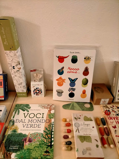 Molto più di una libreria: è un luogo dove la creatività e l’immaginazione fioriscono in ogni angolo. Entrando, si ha subito la sensazione di trovarsi in un mondo incantato, dove ogni libro, gioco e oggetto è scelto con una cura straordinaria. La selezione di libri è una meraviglia per gli occhi e la mente: albi illustrati, libri-oggetto e piccole opere d’arte provenienti da editori nazionali e internazionali, tutti curati nei minimi dettagli e capaci di aprire porte verso nuovi mondi.