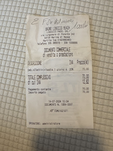 Un ulteriore dettaglio sospetto riguarda il pagamento. Ho pagato in contanti per le sdraio, mentre ho utilizzato la carta di credito per altre spese. La signora alla cassa sembrava visibilmente infastidita quando ho pagato con la carta, dando l’impressione che i pagamenti in contanti non vengano sempre registrati correttamente.
