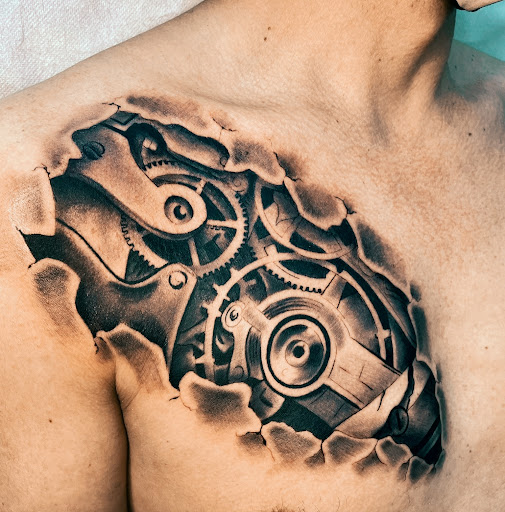 Read moreDesideroso di fare il mio "primo vero" tatuaggio, mi sono imbattuto in questo studio un po' per caso... Dopo averli contattati sulla chat di WhatsApp, dove mi hanno risposto con una certa solerzia, ed avergli proposto il mio soggetto da tatuare (biomeccanico) mi hanno immediatamente comunicato una stima della spesa e mi hanno fissato una consulenza con il tatuatore del "realistico". Lo studio, al primo impatto, è professionale e allo stesso tempo smart al punto giusto... Dopo aver "sbrigato" le pratiche di registrazione al desk dove ti accoglie Ricky, ragazzo molto simpatico ed in pieno stile "ink studio", insieme a Cris (il "mio" tatuatore) abbiamo perfezionato e personalizzato al computer il soggetto da me proposto. Per quanto riguarda Cris (specializzato in tatoo realistici) posso solo spendere parole di elogio perché ha subito centrato lo sviluppo della mia idea traducendola sulla mia pelle in modo stupefacente; ed oltre ad essere super "dotato" da un punto di vista professionale (allontanando ogni mio timore per la resa di un tatuaggio così impegnativo) Cris è un ragazzo estremamente simpatico che sa essere scanzonato e serio e che soprattutto riesce a farti volare il tempo nonostante quasi otto ore di "tortura". Quindi sgombrate il campo da ogni dubbio e rivolgetevi a questo studio senza la minima esitazione perché troverete persone affabili, prezzi concorrenziali e soprattutto molto...