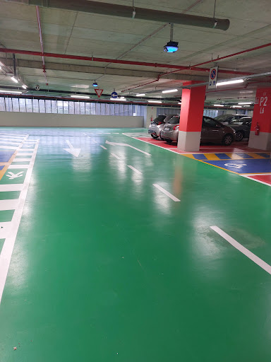 Multipiano,ordinato,nuovo,tutto verniciato di resina colorata,spazi di parcheggio: bene per una macchina piccola,per un suv..attenzione ad aprire le portiere. Segnaletica carente,per poi salire al piano negozi abbiamo utilizzato un grande ascensore, molto più lento di un bradipo, che si ferma a tutti i piani sia in salita che in discesa!! Non abbiamo trovato le scale che di solito sono vicino agli ascensori!!?. SOLO un avviso appeso di fianco alla pulsantiera dell'ascensore che ci diceva che potevamo scendere con le scale poste all'interno del centro commerciale nella zona.???? Scale ne abbiamo viste ma cartelli che ci dicevano"" ai parcheggi"" MAI!! Penso proprio che qui ha regnato la fretta di aprire questo centro. POCHI parcheggi rispetto al pubblico che vorrà venire...penso che questo per un centro così sia un "collo di bottiglia" "che limiterà molto...io sicuramente non ci tornerò! AUGURI a quanti ci...