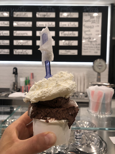 Ho chiesto una coppetta da 3.50€ con cioccolato Kumasi (la ragazza mi ha anche spiegato origine e qualità) e stracciatella. Nessun retrogusto chimico, bocca pulita e non allappata, nessuna sensazione di estrema sete dopo averlo mangiato e digerito molto bene. Per me è un 10! Anche la panna montata (non so se a mano o a macchina) era deliziosa!