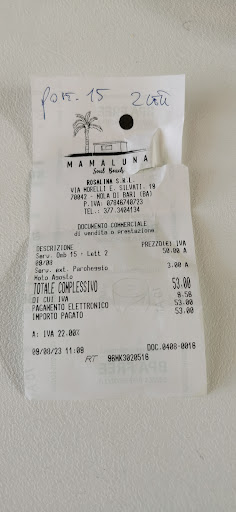 Read moreCome in, take off your shoes and... enjoy the mamaluna! We were here one evening for a drink by the sea and a pizza (delicious! Baked in a wood-fired oven!) and we pleasantly found ourselves in a dreamy, relaxed, informal atmosphere. Guys chatting on deckchairs while having their drinks, families with children running barefoot on the lawn, people having dinner at the table, others dancing to beautiful music (the DJs are very good) in the chiringuito area. There is even a small area where you can buy jewellery and lovely little handmade bags! We stepped onto the beach to put our feet in the water and immediately decided to return in the morning for a day at the beach. Fireworks coming from some nearby place ended our evening with a touch of beauty and unreality. You cannot miss such a...