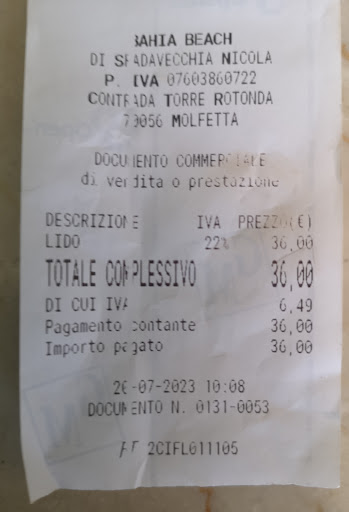 Read moreScrivere una recensione sul Lido Bahia Beach per me è molto difficile ma non perché non saprei cosa scrivere ma soprattutto perché conosco Nicola (il proprietario) da quando avevo 3 anni e quindi le mie parole possono essere viste come un "favore" ad un amico. Ma proprio perché è un amico non voglio prenderlo in giro e quindi dico che questo lido merita le 5 stelle perché veramente ci si sente a proprio agio come se si arrivasse alla "tua casa al mare". Il posto non è pretenzioso o "fake" come si suol dire in questi giorni ma è tutto vero. La cortesia degli addetti ai lavori (dalla reception agli assistenti dei bagnanti, passando per i responsabili del bar e della ristorazione) è davvero da menzionare. La spiaggia è tenuta molto pulita come il resto dello stabilimento. E per finire il ristorante. Ho partecipato solo ad una serata con musica ma devo dire che la stessa è stata molto piacevole dal punto di vista culinario e anche delle persone che vi hanno partecipato. Bravo Nicola,...