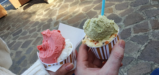 Gelateria piccolina ma con tutto ciò che occorre, dal bel bancone coi gelati ai due frigoriferi con le tortine e le monoporzioni. Prezzi devo dire piuttosto onesti e gelati belli abbondanti. Per i gusti c'è l'imbarazzo della scelta, io ho optato per il pistacchio, il cremino e il mango; quest'ultimo risultava un po' duretto ma nel complesso molto buono, i primi due invece rimanevano belli cremosi. Con un secondo cono ho avuto modo di provare il gusto tiramisù (non mi ha entusiasmato), il variegato all'amarena (buono ma glassa sovrastava il tutto) e il Mediterraneo (questo davvero tanta roba). Nel complesso è una buona...