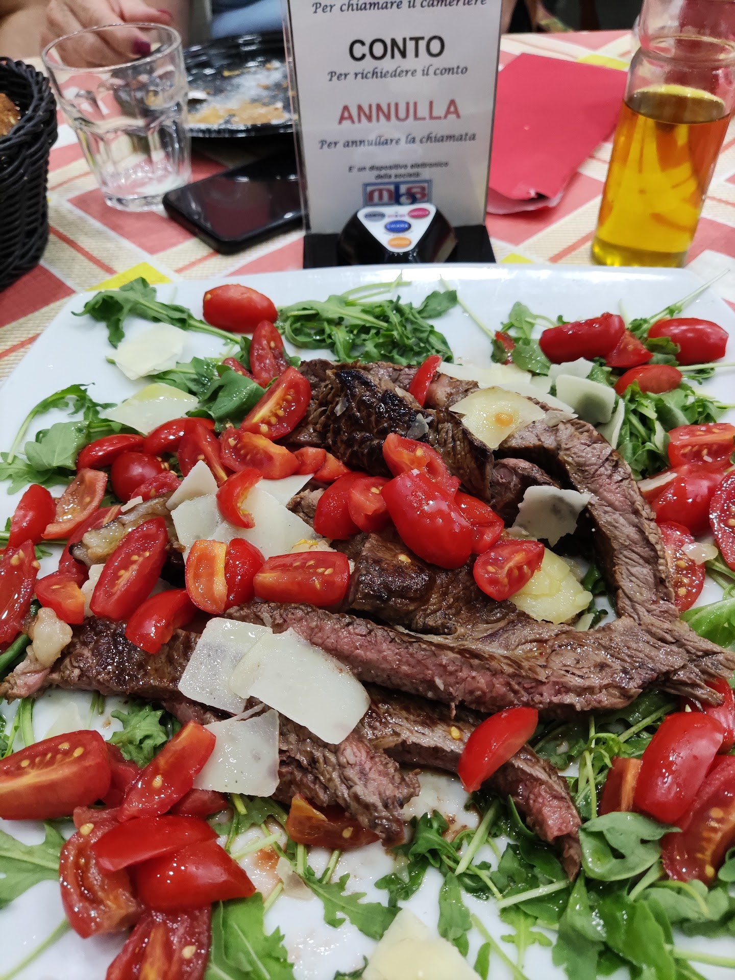 Passiamo oltre. Il mio ragazzo prende una carne che da menù comprendeva anche il contorno, al prezzo di 25 €. Sul conto, invece, il contorno viene addebitato a parte a 5 €. E non è finita. Ci propongono un dolce e la cameriera – che a mio avviso era improvvisata – ci suggerisce un “toast”. Io chiedo se fosse possibile averne una porzione piccola solo per me, e mi viene risposto di sì. Risultato? Arriva un super toast grande abbastanza per 4 persone, e sul conto figura a 8 €. Un toast alla Nutella, di cui ho mangiato mezza fetta, il resto l’ho portato via e nel tragitto si è indurito come marmo.