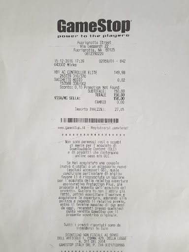 Read moreVi racconto quanto mi è accaduto stasera. Dopo aver acquistato una nuova xbox series s il 10 novembre presso il negozio a fuorigrotta, dopo qualche giorno che l'avevo lasciata inutilizzata ed avevo fatto solo i dovuti aggiornamenti mi accorgo che l'audio funziona a intermittenza, funzionando e non funzionando. Dato ahimè che durante il periodo successivo in campania c'era zona rossa e non si poteva uscire dal proprio comune, decido quindi che il primo giorno in cui ero libero post-zona rossa sarei andato allo store. Ebbene nello store ho incontrato un commesso biondo e magrolino che antipatico e scorbutico è dir poco. Insinuava che cose del genere non erano mai successe e che il danno fosse stato procurato da me. per di più mi ha liquidato dicendomi che potevo andare prima da loro, come se la zona rossa non ci fosse mai stata. Non comprate in uno store dove sono cordiali quando devono incassare i vostri soldi ma scorbutici quando devono risolvere i vostri problemi. Assurdo che questa persona abbia un...